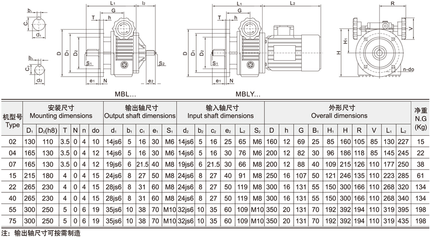 MB系列無(wú)級(jí)變速機(jī)臥式與立式安裝尺寸