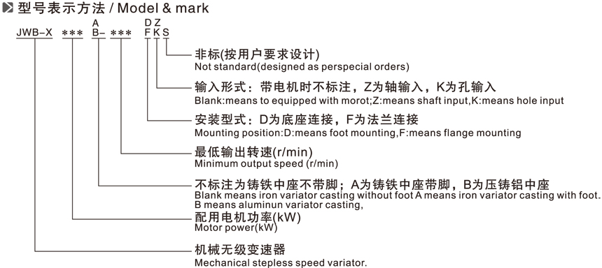 JWB-X系列無(wú)級(jí)變速機(jī)型號(hào)表示方法