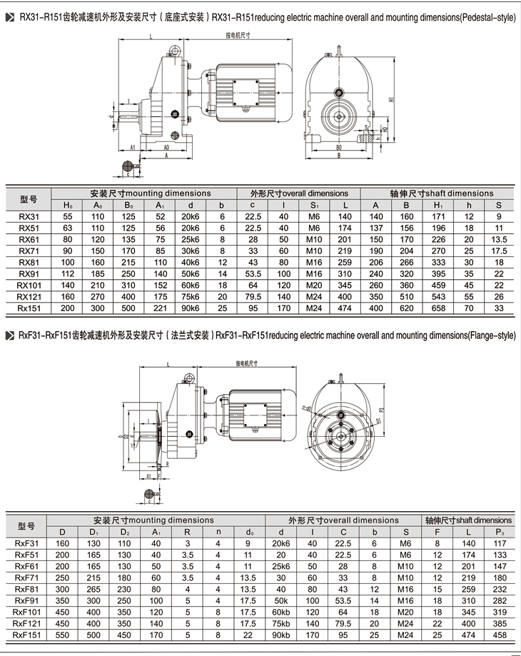 RF:底腳法蘭安裝 RM:法蘭安裝帶加長軸承箱
